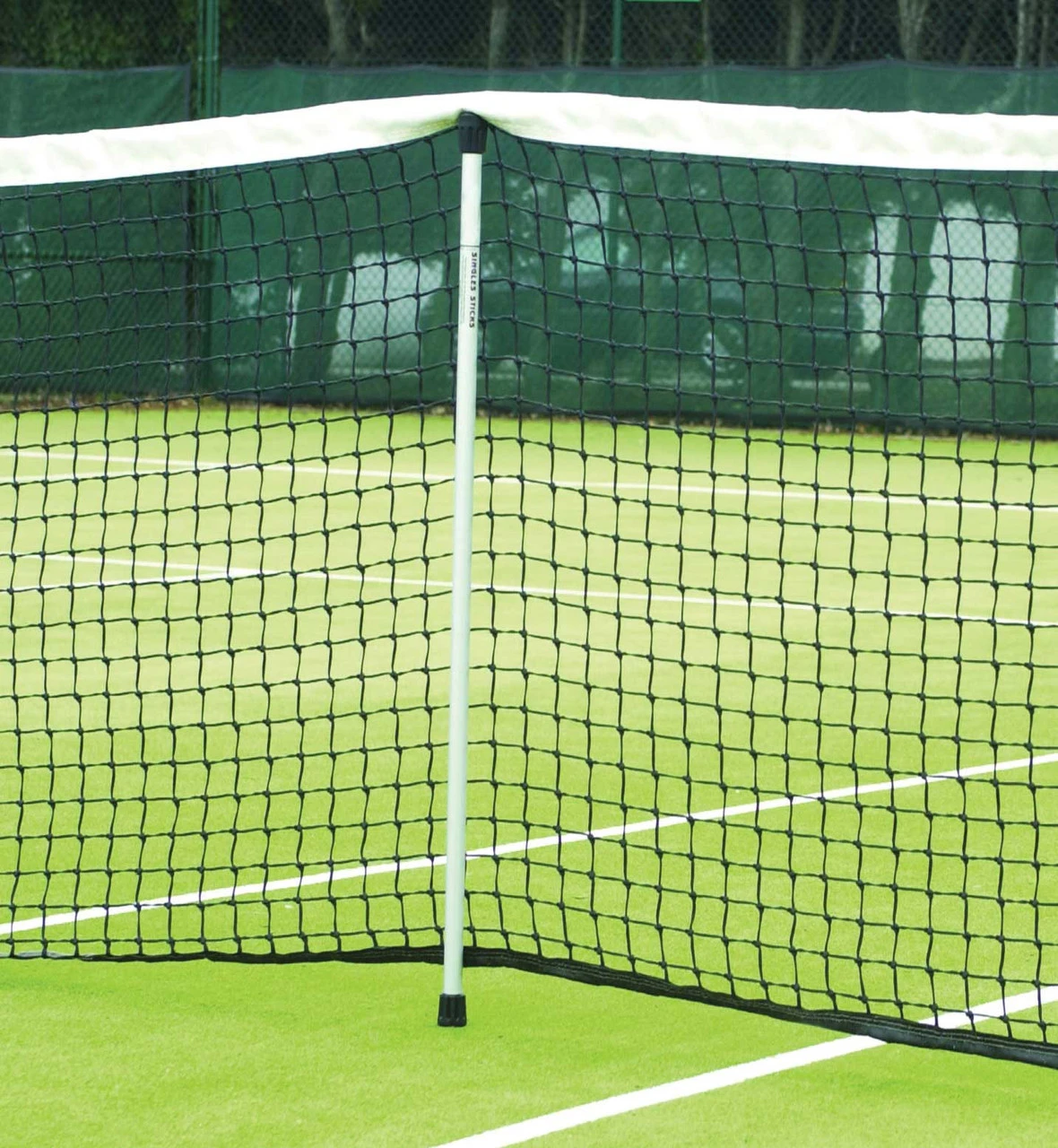 Gamma Aluminium Singles Sticks (a pair)Â provide the correct net height for singles play on a doubles court. 9 mm aluminium tubing with protective end cap and ‘V’ shaped top.