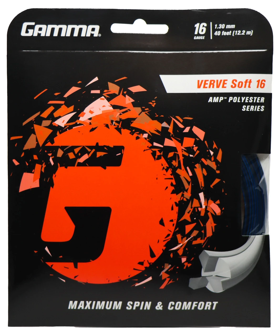 Gamma Verve Soft is a soft co-polyester string which offers maximum spin potential whilst maintaining comfort levels. A combination of stiff and soft materials aim to please harder hitters who require power, control and forgiveness. There are three protruding, stiffer, filaments which maximise ball bite for higher levels of spin potential and to help penetrate shots from all areas of the court.