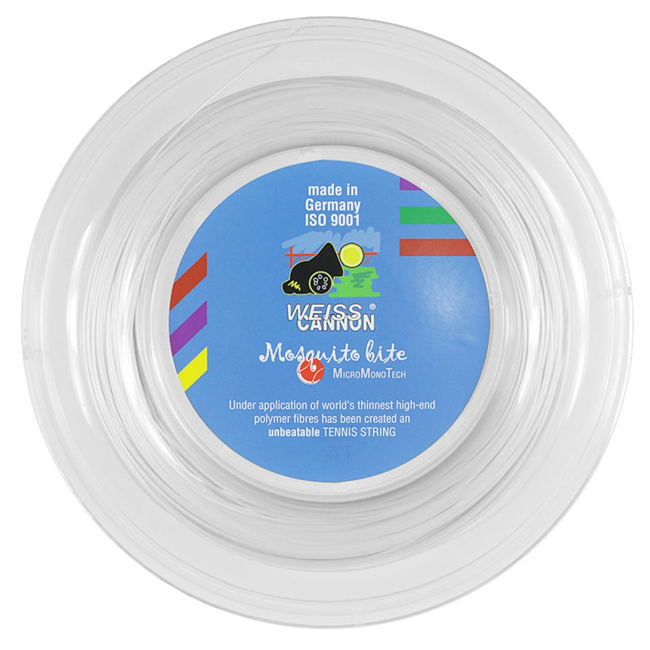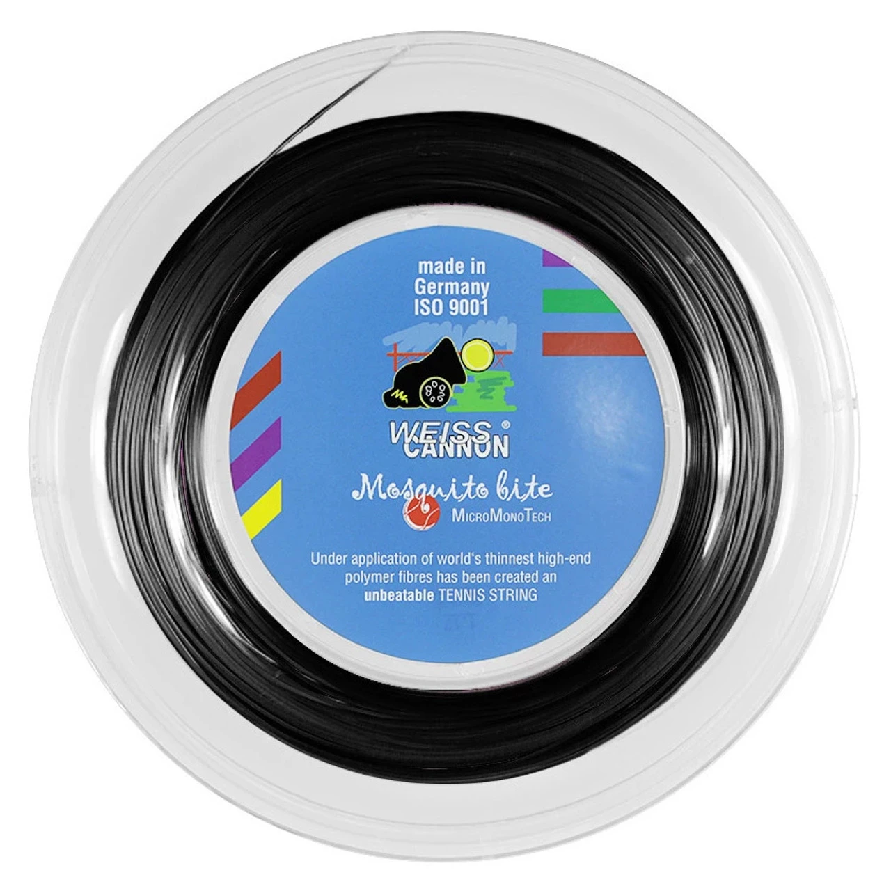 Weiss Cannon Mosquito Bite is an ultra thin monofilament poly based string which offers dynamic spin, power and control.
